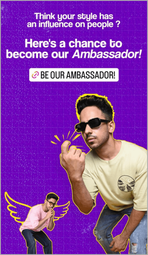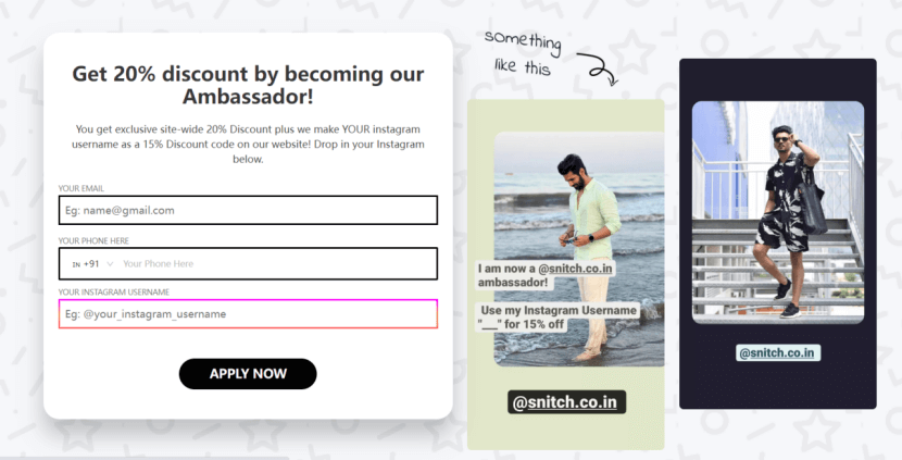 Snitch的大使计划向所有用户开放,只要在Instagram上分享自己的购买Snitch 的照片并添加标签@snitch.co.in即可加入。