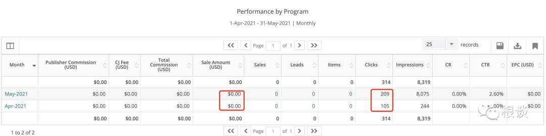 收到有些读者问我说我按照你文章写的内容去开联盟平台,花了很大的精力去招募联盟客,但是项目效果不好,甚至有些朋友花了3000美金的一次性开户费开了CJ平台,但是上线两个月过去了(如下图),一个订单都没有,只有零星的点击,每个月还要付CJ的最低消耗500美金,由于合同期限限制,关也关不了,实在进退两难。