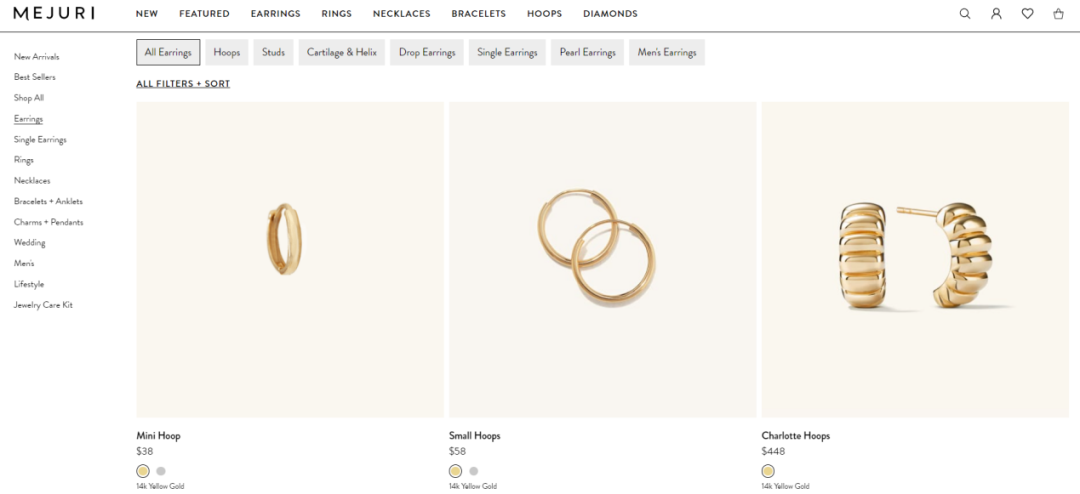首先Mejuri的网站设计简洁、美观,易于导航,用户能够快速找到所需的信息和产品。此外,Mejuri的内容也非常丰富和有价值,能够吸引用户停留和深入了解品牌和产品。这些因素共同作用,使得Mejuri的网站成为了一个高转化率的营销渠道,能够吸引大量的潜在客户,并将他们转化为实际的消费者。这也是Mejuri能够在市场上取得成功的重要原因之一。