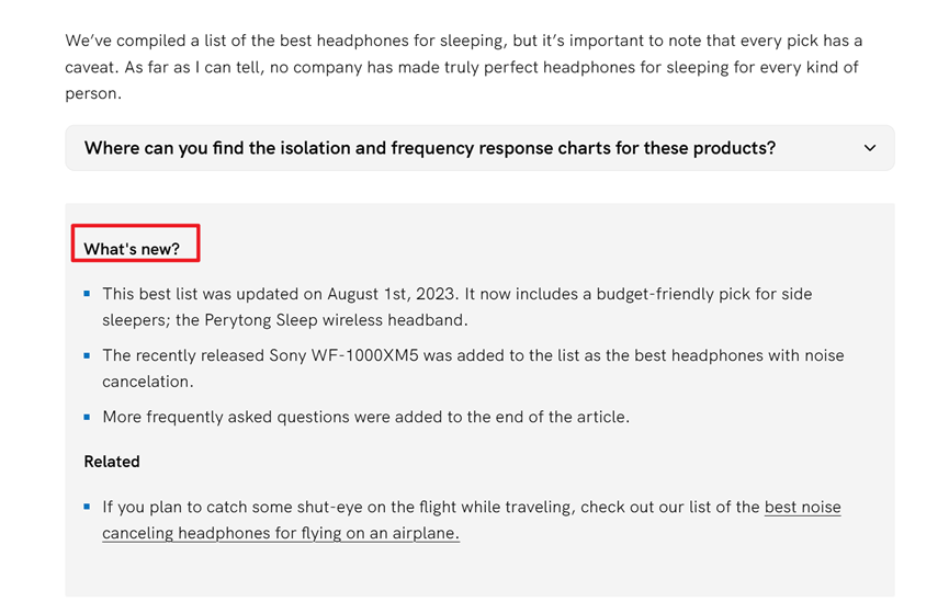 另外我们也发现,文章的内容很关注用户体验和需求,例如他们每次新发布或更新的测评文章都会补充对用户有价值的信息,如“What’s new”部分,这些细节能够提升用户对内容的信任度。
