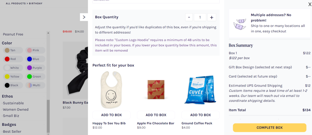 在经营了一段时间之后,Happy Box 收到了给同事定制礼盒的企业订单需求,他们很快意识到这是一种以指数方式发展业务的好方法,因为客户获取成本是相同的,但企业定制礼品的收入却是几何倍数的,因此,他们决定也满足企业界对独特礼物的需求。