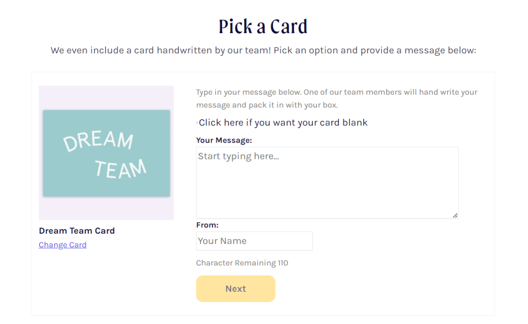 点击“Complete Box”即可挑选盒子,选择祝福卡片,自定义卡片留言。