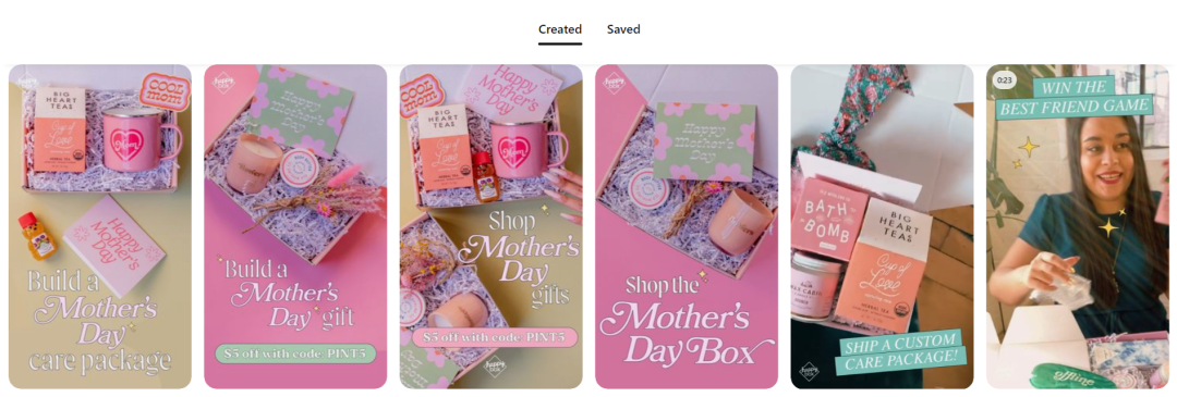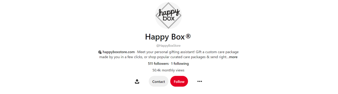 Happy Box 的Pinterest主页非常注重风格的统一性和个性化,每月的平均浏览量达到了50K。尽管他们会使用不同的主题来为不同的场合推荐礼物创意,但每个系列之间的画风也非常的和谐,非常符合Pinterest用户的美感诉求。