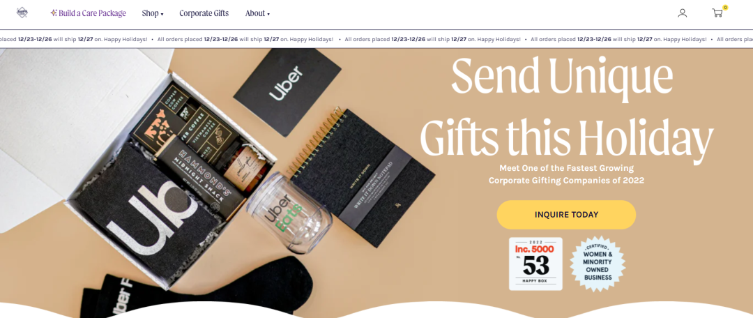 Hannah 和 Ariel 从 2016 年开始将 Happy Box 作为 Etsy 的兼职项目启动,取得了小范围的成功之后,他们在2017年推出了自己的独立站,并在 2020-2021 年疫情爆发期间快速增长了 10 倍之多。