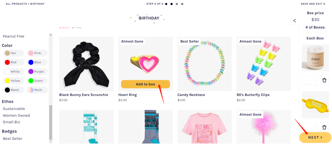 将选中的产品添加到盒子中,点击“NEXT”进行下一步。