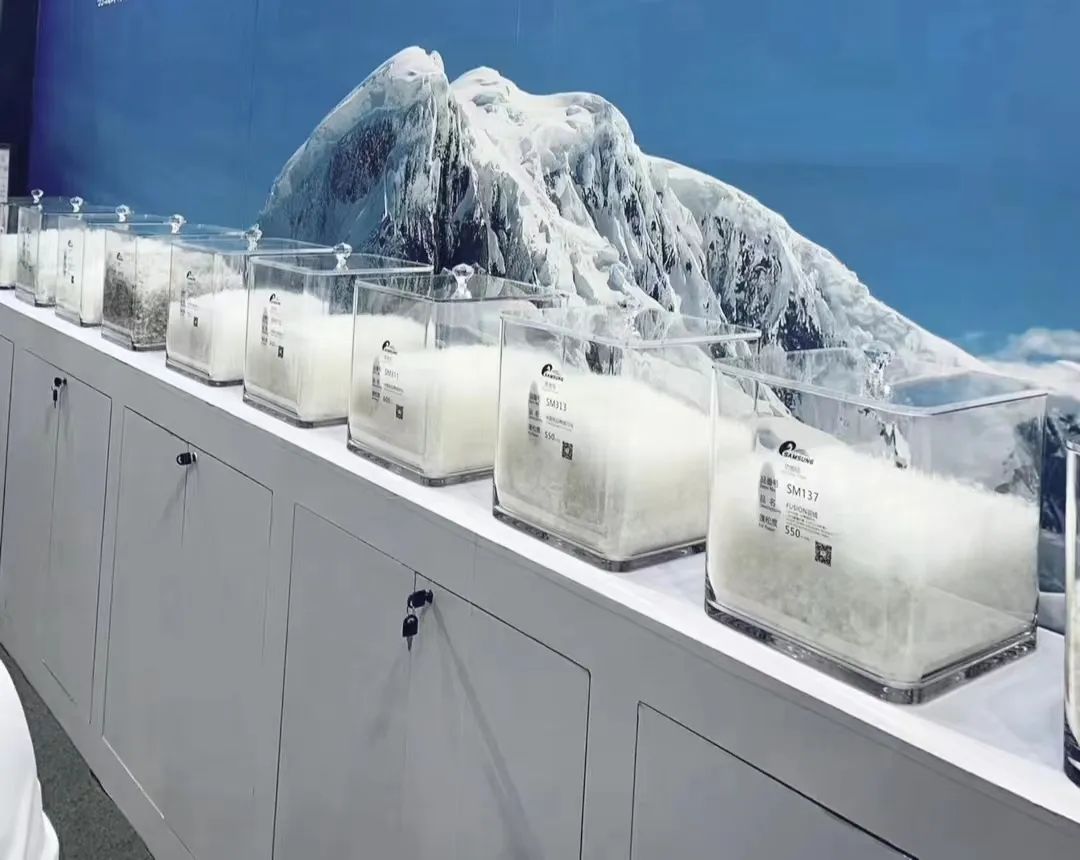 三星羽绒展出的各种羽绒原料
