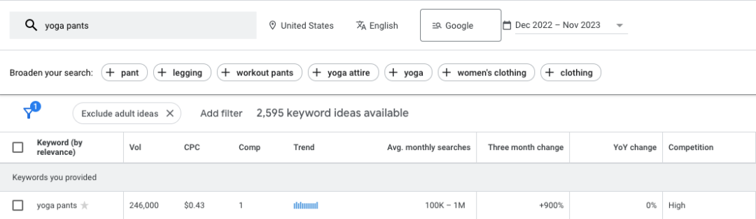 只要是搜索量差距不是很大的词,那真实性都是可行采纳的。但是对于那些数据偏差很大的关键词,就比如上面提到的“yoga pants”,谷歌平台的数据与 SEMRUSH 平台的数据,相差很大,这里我便以官方平台为准。