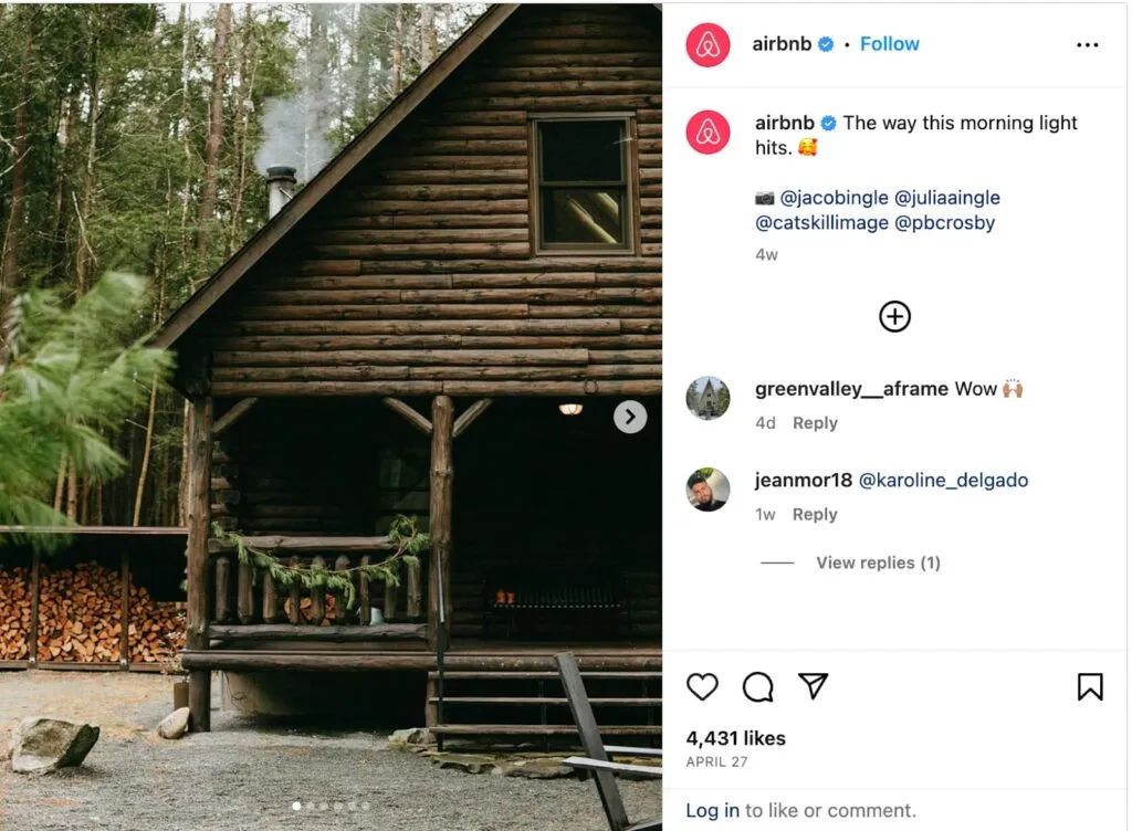 爱彼迎 的 Instagram 账户上满是顾客拍摄的照片。该品牌的特色是这些看起来自然的图像,只经过了最少的编辑或修饰。这与经常经过大量编辑的 Instagram 旅游博主图片相去甚远。