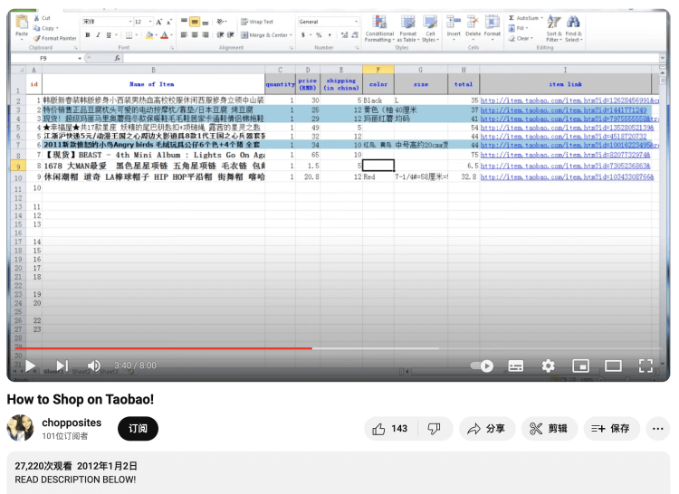 YouTube 最早一个“淘宝购物教程”;图源:chopposites / YouTube