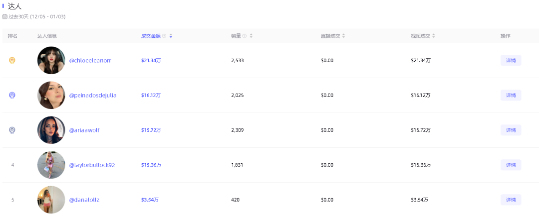 近几个月,Homeika 选择通过达人推广的方式让这款宠物毛发吸尘器在 TikTok 快速获得了大量的曝光。根据 kalodata 平台提供的数据显示,在过去 30 天(2023/12/5- 2024/1/3)里,TikTok 上共有 61 位达人为该款产品拍摄了视频,最高成交金额超 20 万美元。