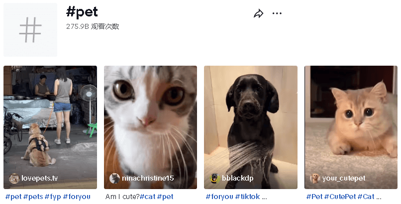 对于当下不少人来说,“撸猫”“撸狗”早已成为生活中一大乐事,继晒娃晒美食后,不少用户也热衷于在 TikTok 上晒自家爱宠。截至目前,宠物相关的话题标签 #pet 在 TikTok 上已经拥有高达 2000 多亿的浏览量,基于对宠物的喜爱之情,越来越多的宠物主也更加乐意掏腰包为“毛孩子”购置清洁美容等宠物用品。