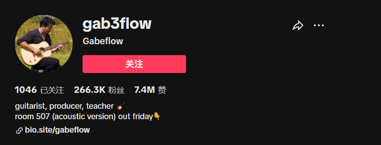 Gabe,一位活跃在TikTok上的吉他老师,因为经常分享很多能帮助初学者获得立竿见影效果的技巧,因此吸引了不少粉丝关注,目前拥有266.3k的粉丝。