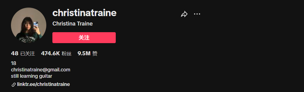 Christina Traine,一位年仅18岁的电吉他手,演奏的视频风格跨度很多,既有摇滚,还有R&B,甚至连最近兴起的复古Citypop都有涉猎,因此吸引了474.6k名粉丝关注。