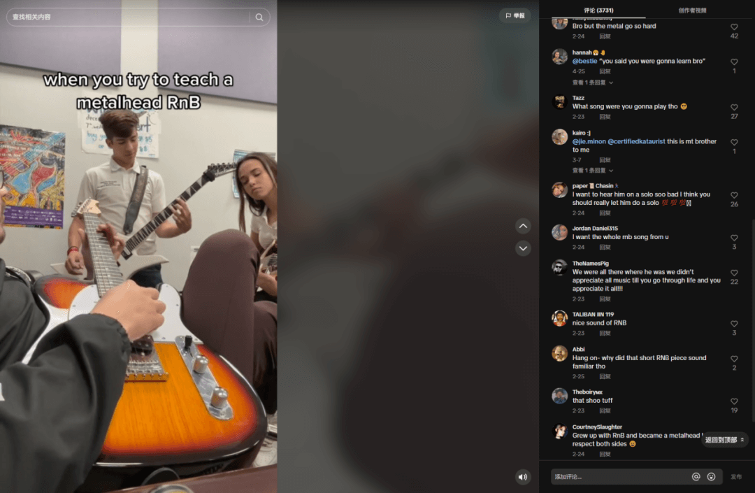 而音乐又是现代流行文化的重要组成部分,所以TikTok上有非常多的音乐内容,这也直接导致了音乐红人的涌现。不管是单纯的唱见,还是以乐器为抓手的soloer,亦或者是乐队,都在孜孜不倦地生产内容。