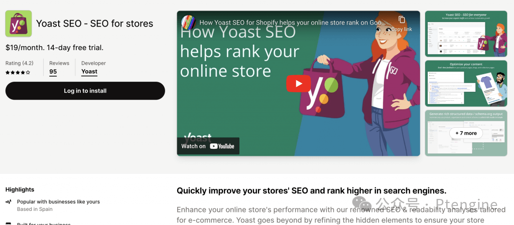 6. Yoast: Yoast作为SEO界的知名品牌,为Shopify提供一个应用程序,将其内容分析专长引入你的商店。它能帮你撰写更优质的产品描述和博客文章,并确保内容是SEO友好的,让你的内容既吸引人,又能优化搜索引擎。