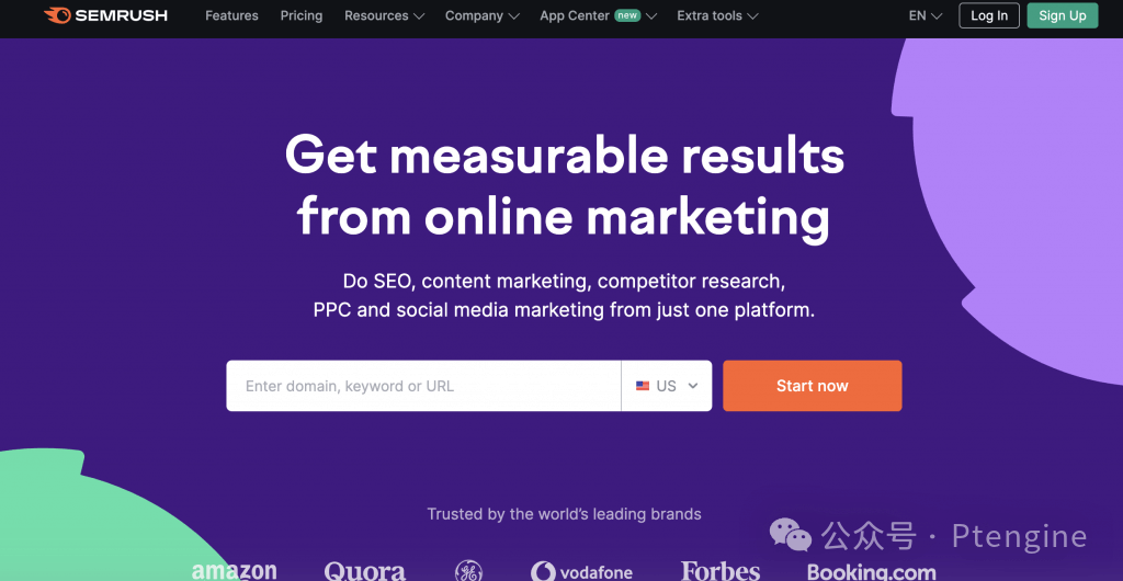 8. SEMRush: SEMRush也是一个全面的工具。提供各种各样丰富的功能,如网站审计,关键字研究和竞品分析。其跟踪排名并识别改进机会的能力,使得它在任何电商SEO活动中都不可或缺。