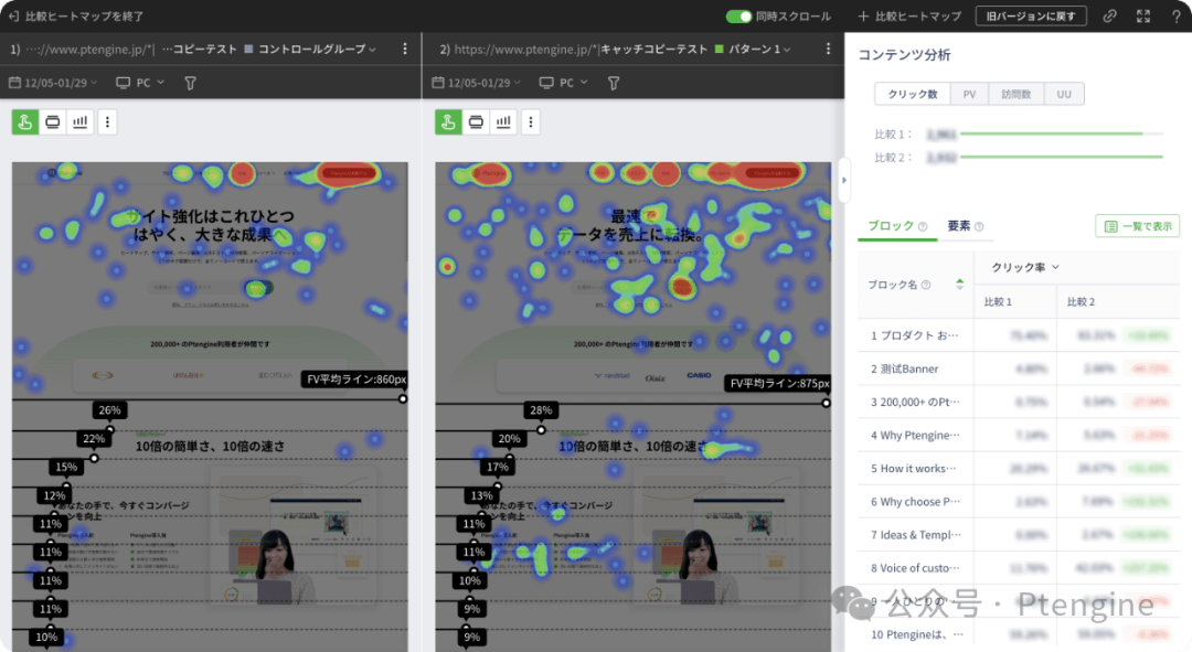 因此,如果你尚未对A/B测试相关的页面进行此类可视化分析,请立即使用Ptengine等热图工具进行此类分析。