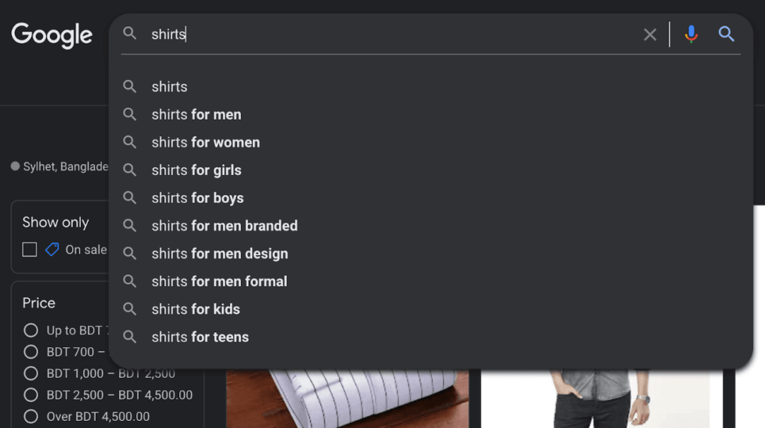 此外,我们还可以使用 Google的“自动拼写补全”功能,来确定购物者的搜索意图。
