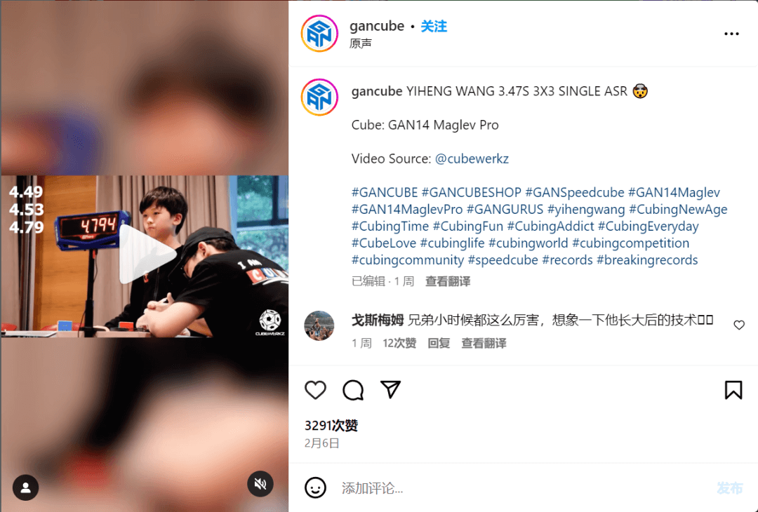 通过其INS和TikTok的发布内容,可以发现GANCUBE在社交媒体平台上的运营策略主要集中在两个方面来吸引魔方领域的专业玩家: