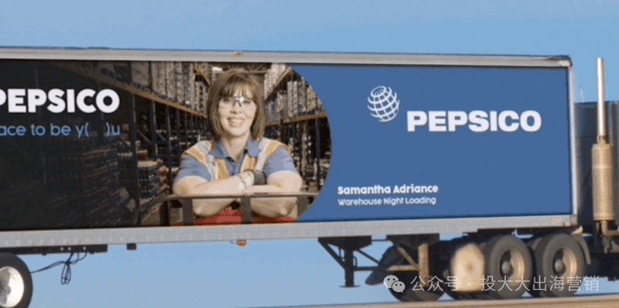 PepsiCo百事可乐的妇女节活动主题是’She is PepsiCo’,重点关注北美制造和运营领域的女性。品牌将来自20个城市的28名百事可乐一线女员工,包括卡车司机、仓库工作人员和采购人员的照片放在了北美区域运输卡车两侧的巨大广告位。