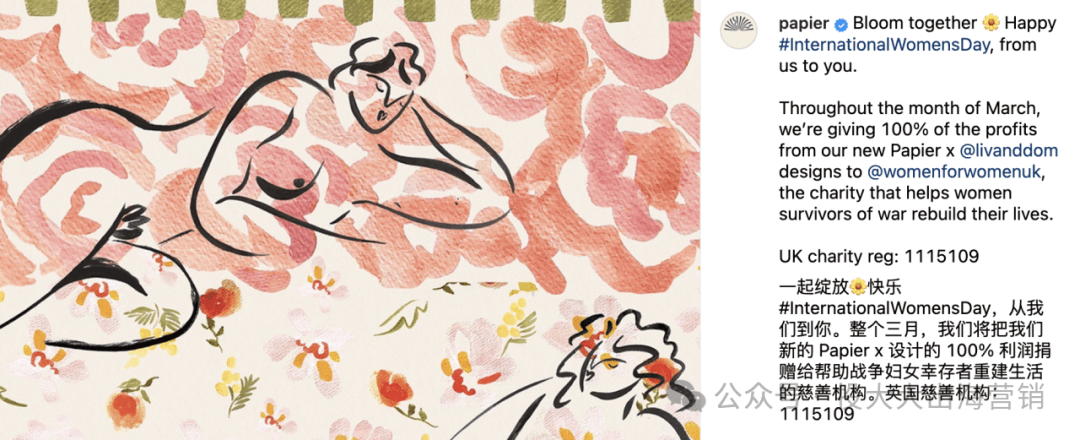 因此,借助庆祝妇女节,品牌可以通过传达观点来引发那些重视价值观相符的客户的共鸣,并建立积极的品牌形象,从而扩大潜在客户的体量。