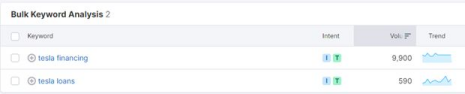 关键词“Tesla Financing”帮助我们确定了搜索量比“Telsa Loans”高得多的合适目标受众。
