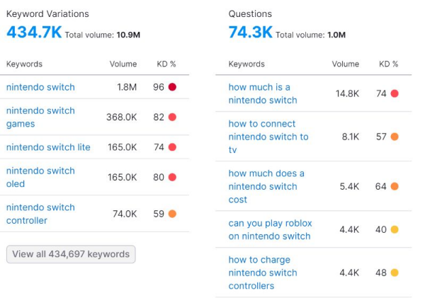 此外,您还可以使用 Google Keyword Planner、KW Finder、Moz Keyword Explorer、Semrush、Ahrefs 和 Long Tail Pro 等工具,它们提供多种功能来帮助你找到正确的关键词。
