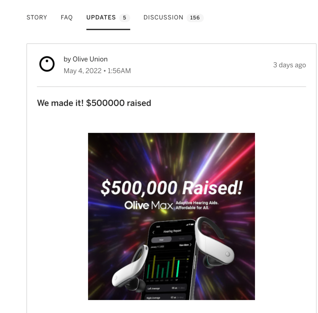 - Updates有助于在众筹发起人和支持者之间建立联系