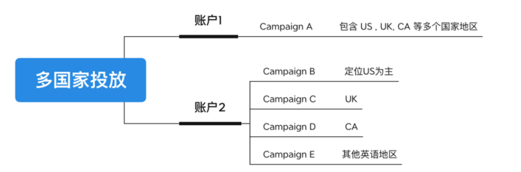 除了素材的测试以外,对于多国家的投放,是放在一个系列里面投放好呢,还是分国家分开多系列进行投放比较好呢?这也属于在账户框架搭建之初会面临的问题。