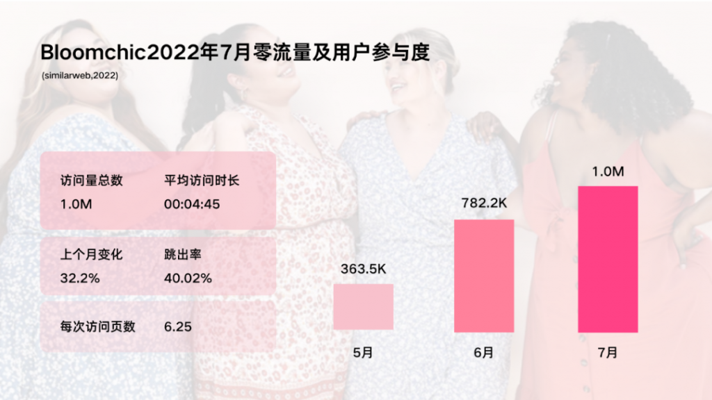 Bloomchic的增长速度很快,尤其在今年6-7月,网站访客数增长了175%,直接飙升到了100万。