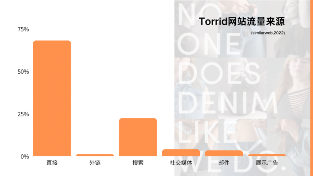 比起前面分析的两个品牌,Torrid的直接流量明显高很多,高达68.1%的流量都是直接流量,可见Torrid的品牌声量。早在2012年,Torrid就针对品牌进行了重大重塑,推广新的时尚前沿服装系列和品牌元素,在各大社媒招募网络红人以及明星名人进行品牌推广。