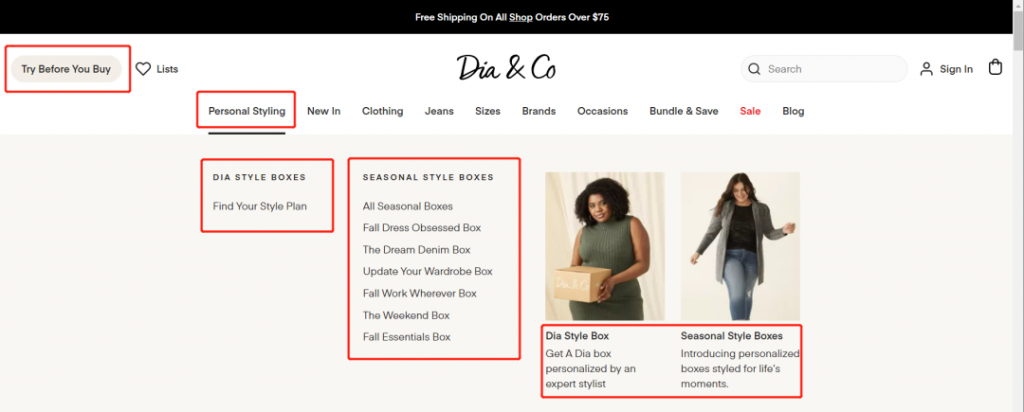Dia&Co的另一大卖点就是他们的先试后买政策,大码女孩们可以选择Try Before You Buy功能,首次支付20美元,如保留衣服则计入实际消费账单,让大码女孩们能够找到更合适自己的衣服,也打造出了Dia & Co 「先试后买」的卖点。