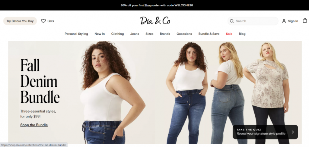 从自己的真实经历中,Nadia开始思考怎样帮助和她一样的大码女孩,让她们能够买到穿得舒适又时尚的衣服。于是Nadia Boujarwah和同学Lydia Gilbert一起创办了大码女孩专属的品牌Dia&Co,品牌名称取自她和Lydia的名字,在初期成功从一些女性投资人和亲友处融资到了100W美金,正式上线了独立站。