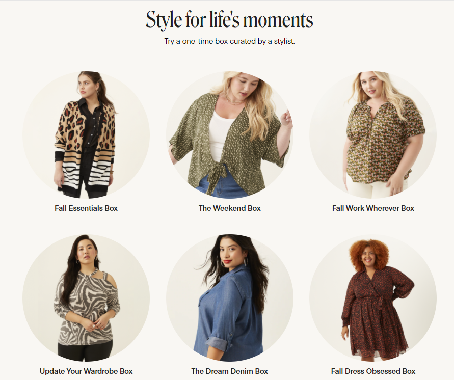 在订阅盒子之前,大码女孩们需要先在官网填写详细的问卷,提供身材比例、风格偏好、预算等需求,然后支付 20 美元的造型费后,用户就会收到专属造型师个性化搭配的 5 件产品(或自己搭配3件产品,造型师搭配2件产品)。喜欢的产品可以用 20%至 25%的折扣买下。不喜欢的产品也可以在5 天内直接邮寄退货。