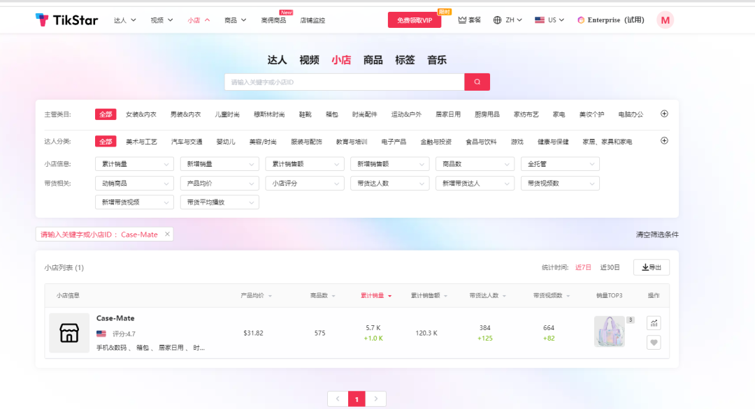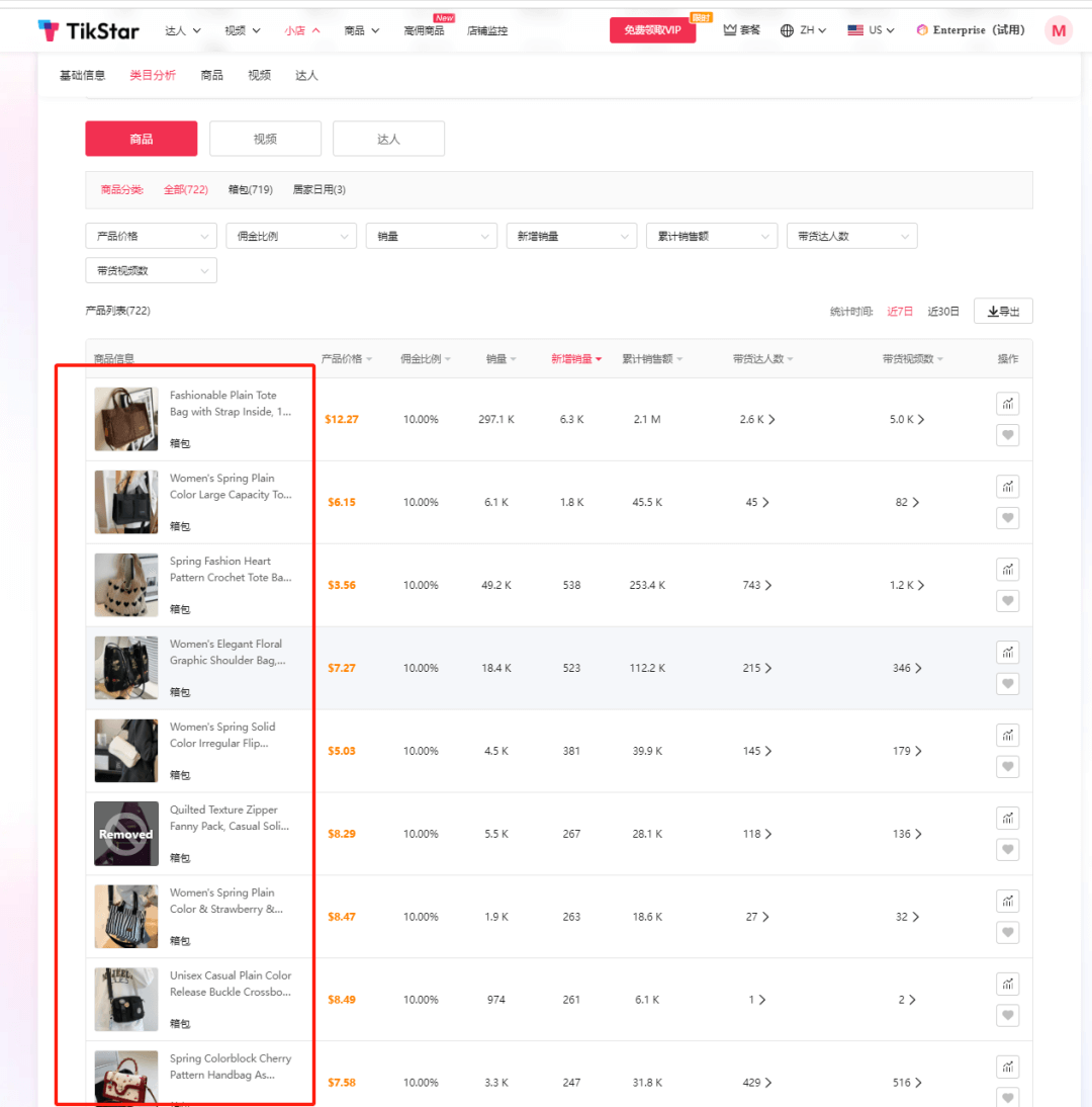 排名第一个和第二个是已知从tikstar上获取的店铺Charmbag