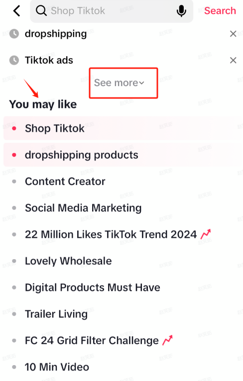 第三步,提取优秀店铺对应的关键词,进入tiktok搜索前台,获取联想词