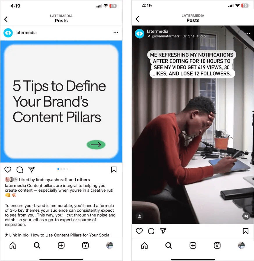 谋定而后动,在思考发帖策略之前,我们建议品牌先对自己的个人主页进行一个整体的规划。比如Instagram是一个视觉为重的平台,人们来到你的主页就像看到一扇橱窗,如果你的主页内容杂乱无章则不会吸引人继续探索,如果你的主页注重品牌影响的整体性和品牌表达的一致性则更容易让人眼前一亮。