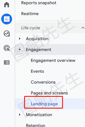 在report>engagement>landing page