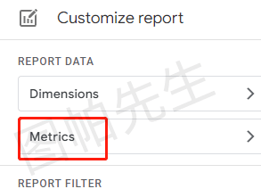 来到customize report,然后选择metrics