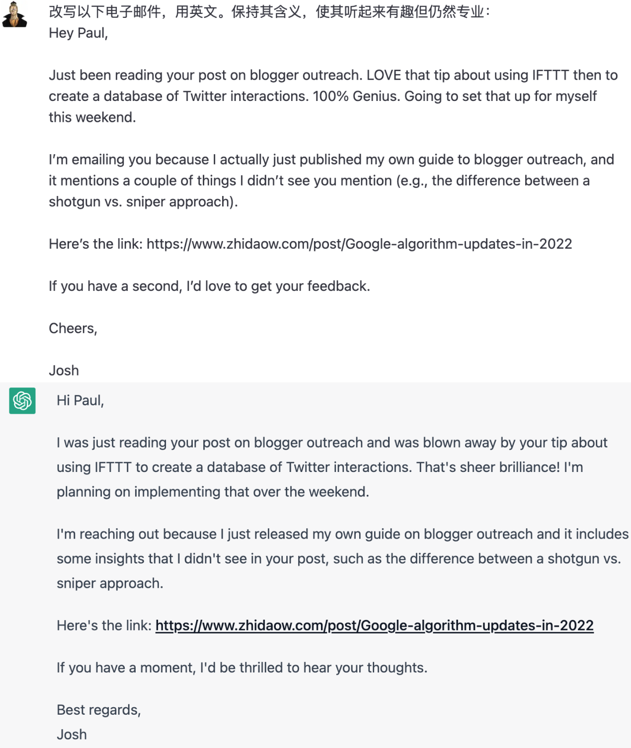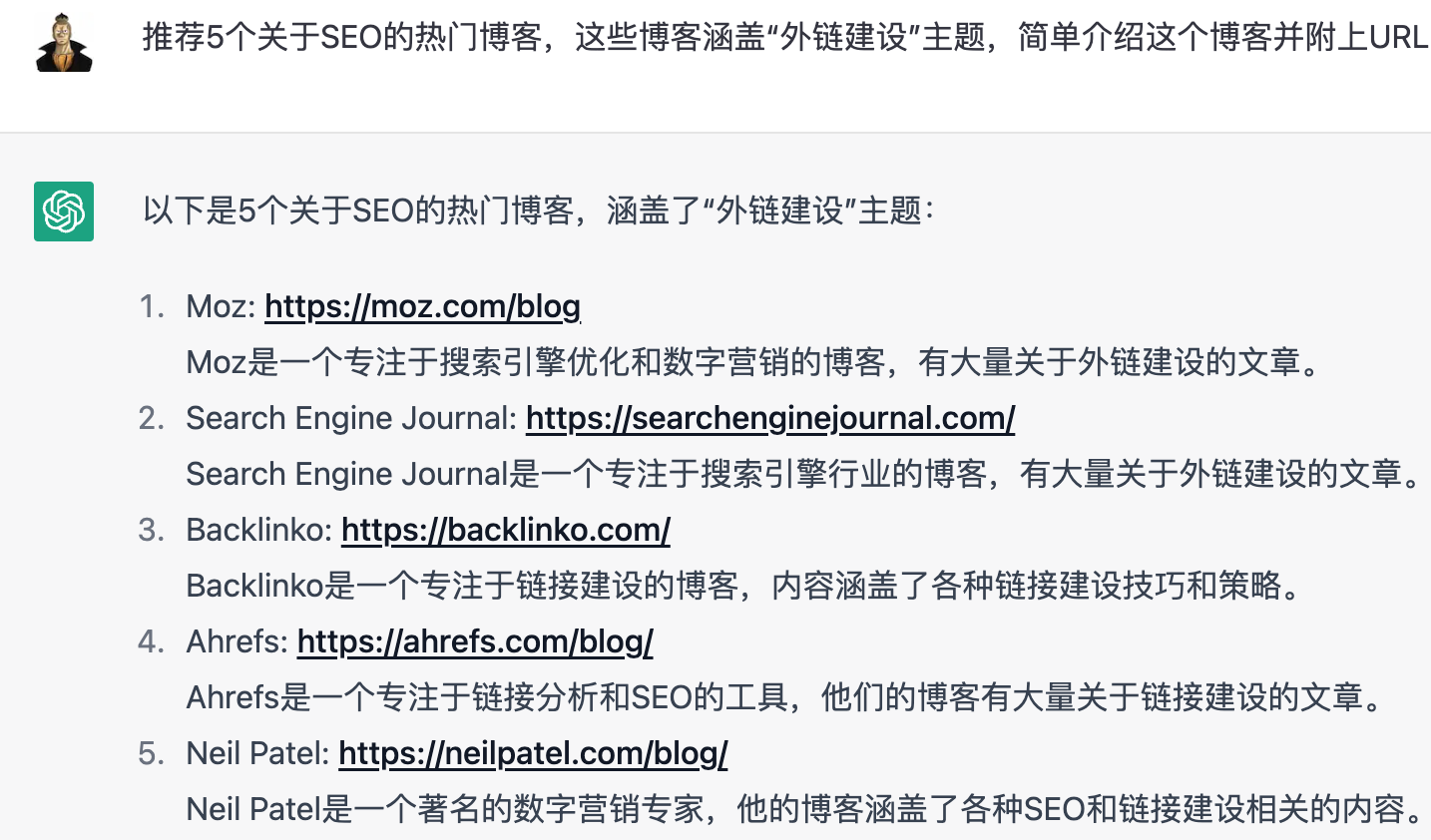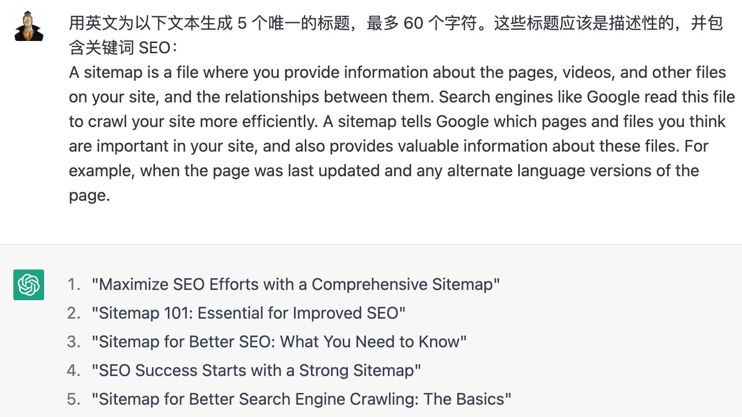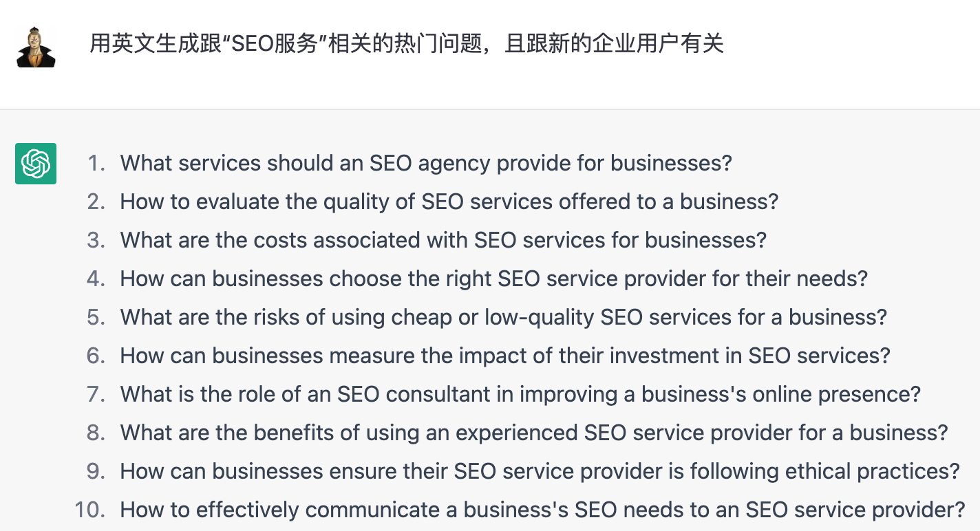 少部分内容参考这个文章(https://www.practicalecommerce.com/5-ways-to-use-chatgpt-for-seo)