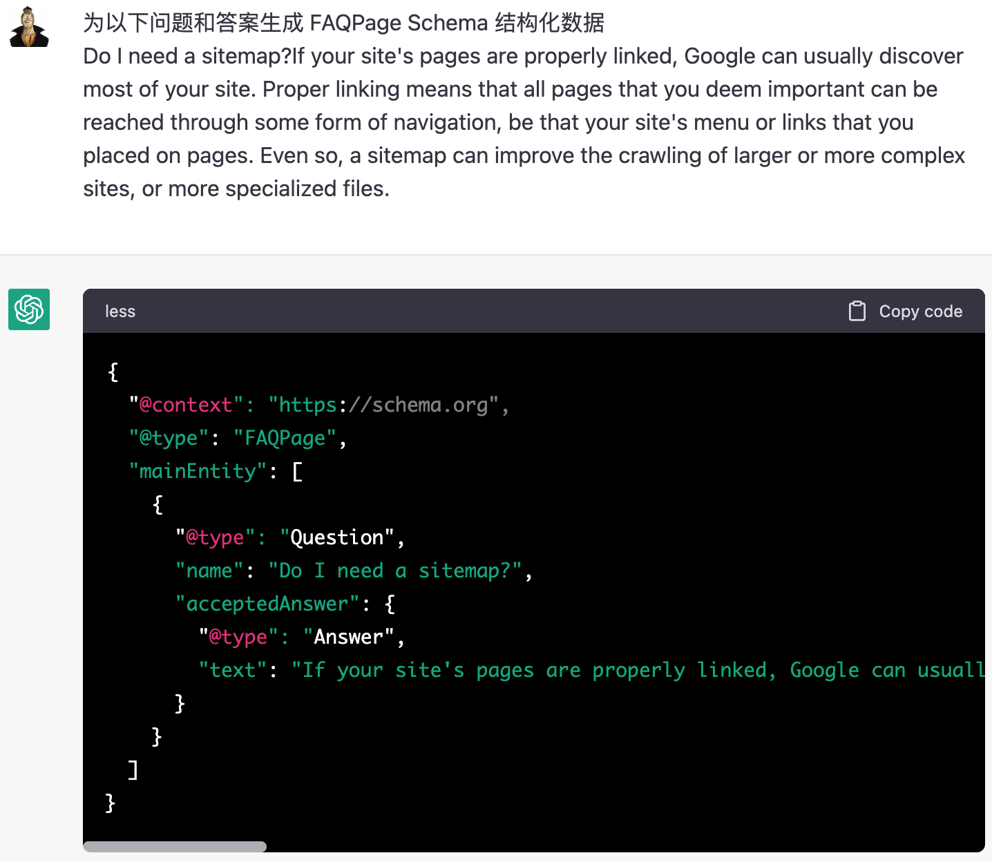 中文指令:为以下问题和答案生成 FAQPage Schema 结构化数据…
