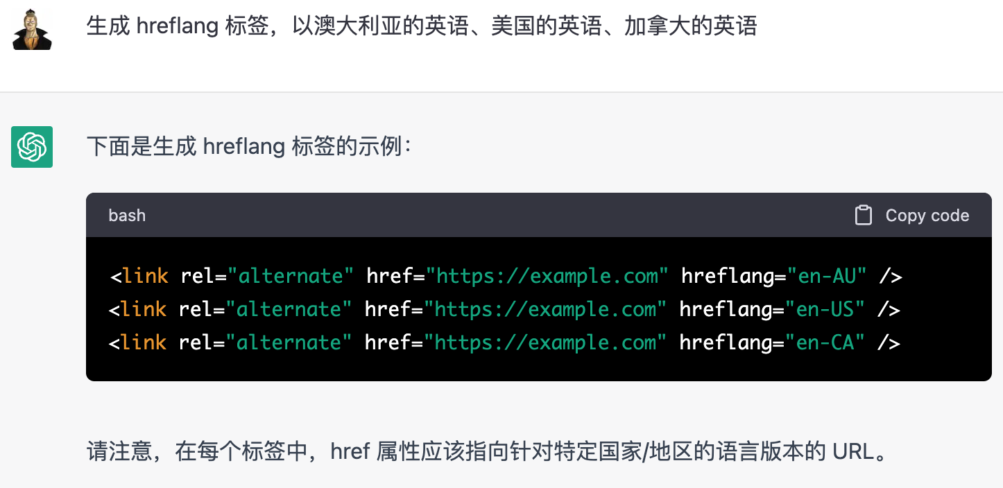 中文指令:生成 hreflang 标签,以<某地区的某语言>、<某语言>