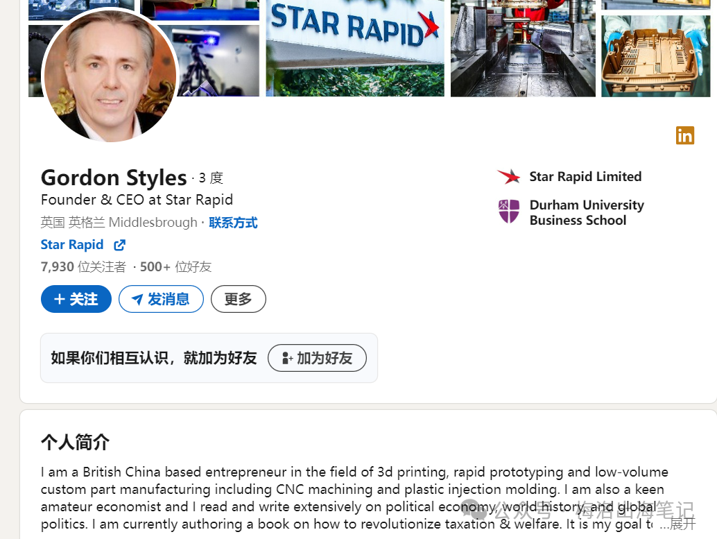 中山世达五金,老板是英国工程师 Gordon,这位英国老板在中国做快速成型3D打印和CNC机加工可谓是风生水起,行业内算是路人皆知,据传Starrapid凭一己之力养活了其中山总部方圆几十公里内大大小小的机加工厂。抛开世达五金的老板是个老外具有先天营销敏锐度这个优势不谈,我们来看看他到底做了哪些东西值得我们去学习!