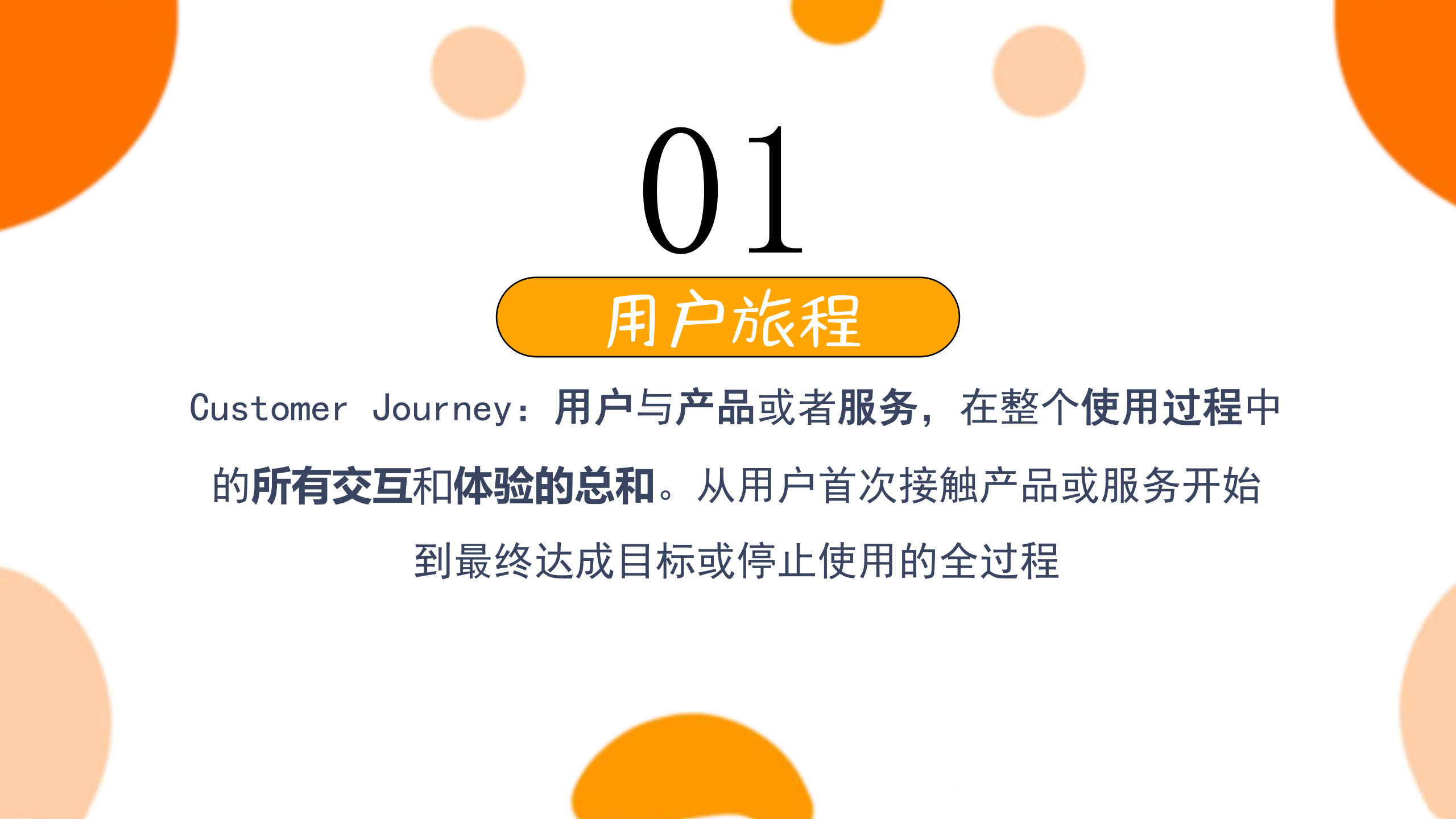 首先看一下用户旅程这个定义?Customer Journey,用户与产品或者服务,在整个使用过程中的所有交互和体验的总和。它从用户首次接触产品或服务开始,到最终达成目标或停止使用的全过程。