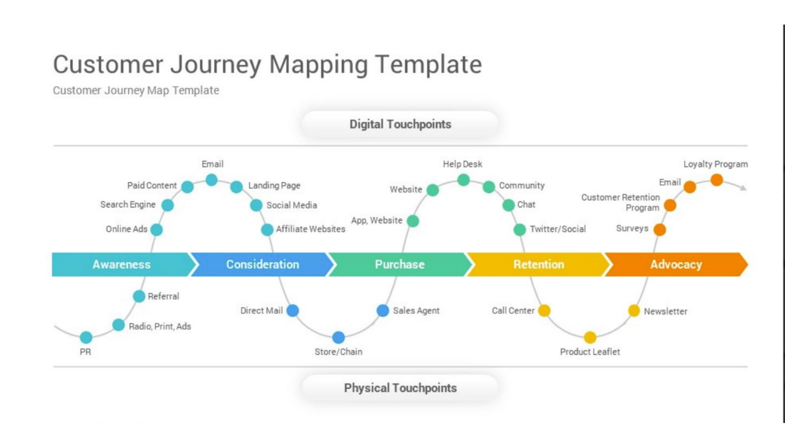 意识阶段它是怎么来的?可以做广告、社媒、SEO、论坛;Consideration阶段,客户通过Landing page进入到网站,客户在看到了解我们品牌以后,会去Reviews site、Customer Reviews看用户对品牌的评论;购买阶段,客户会问一些Customer Before Service、Help Desk、Sales team进行购买;客户在使用的时候,还要进入到相关的论坛、社区,甚至会接收到咱们的产品的介绍,再到用户忠诚度的阶段。