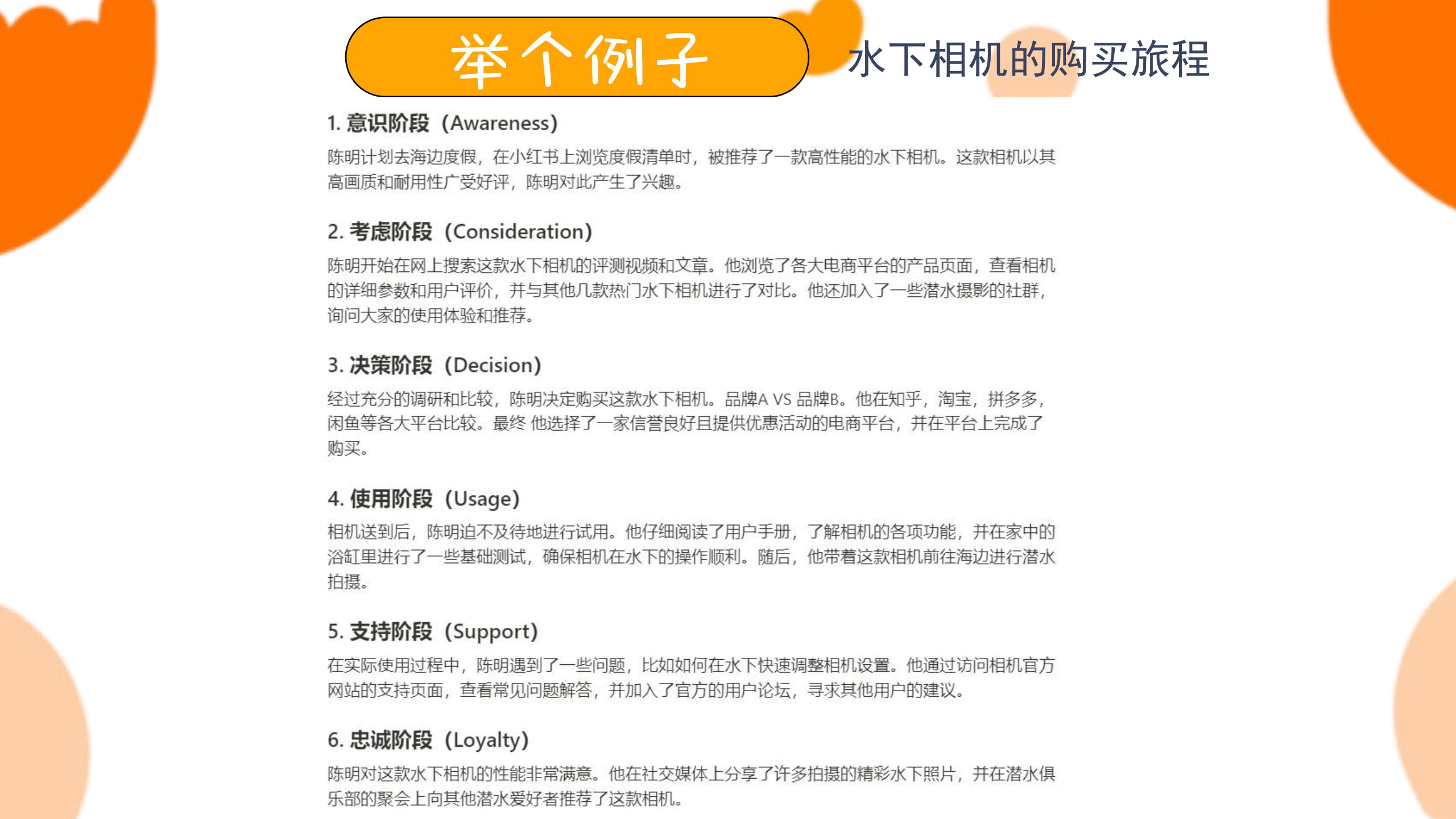 举个例子:水下相机的案例。作为用户来讲,如何购买一款产品-水下相机。