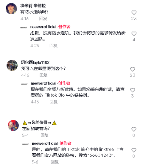 为了进一步加深品牌与用户之间的情感链接,增强用户对品牌的亲密感和忠诚度,Neewer 积极与用户进行互动,不论是在视频评论区回复用户的留言,为他们答疑解惑,还是鼓励用户参与和分享自己的摄影作品,都是想让用户感受到被重视和关心。