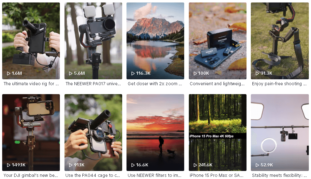 在 TikTok 这一快节奏、年轻化的平台上,Neewer 主要发布与摄影相关的短视频,内容主要包括产品展示、产品使用教程、摄影效果展示等,高清画质且丰富多样的视频内容不仅让用户在观看视频的同时感受到摄影的乐趣和快乐,还贴近用户日常需求顺势展示了产品的功能特点、实际应用场景和使用效果。
