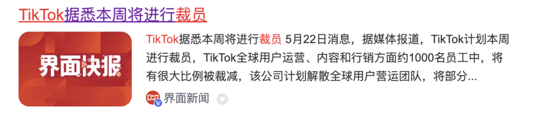 最近关于TikTok传闻不断,暂缓新开5国计划以及美国公司裁员。