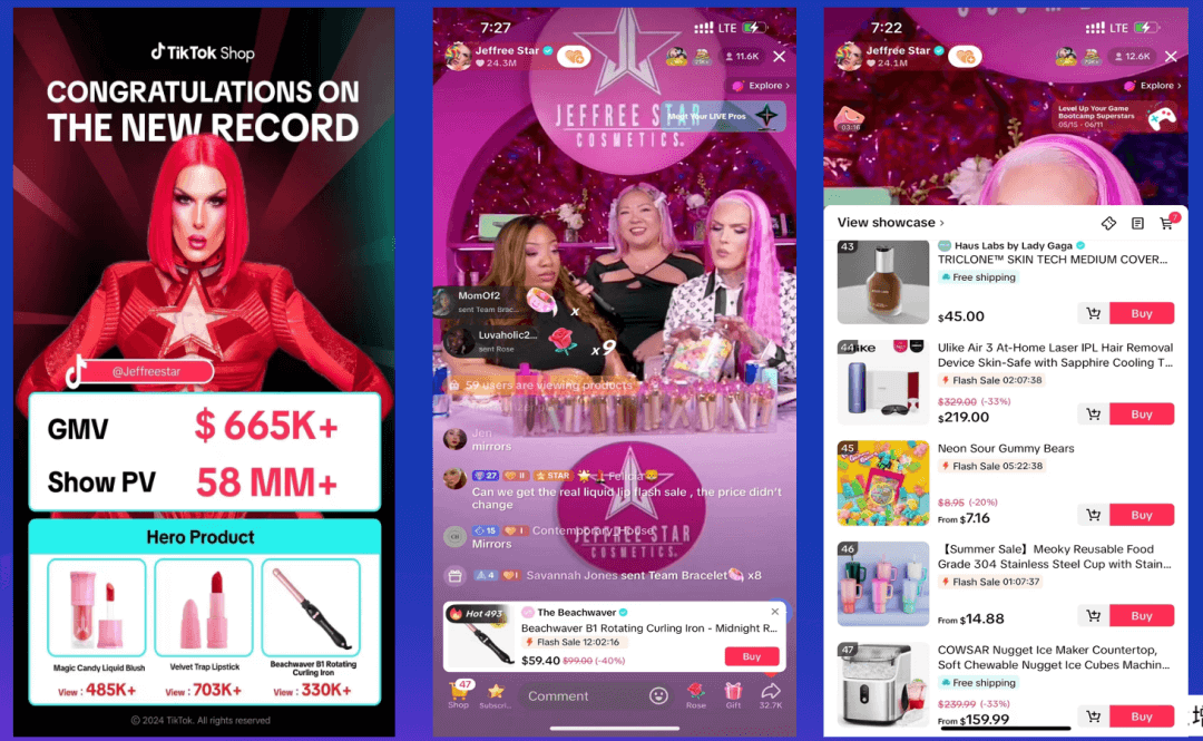 随着J姐的下播,TikTok直播间“Jeffre Star”创造了迄今为止单场GMV的最高纪录66.5万美金,约合人民币481万。
